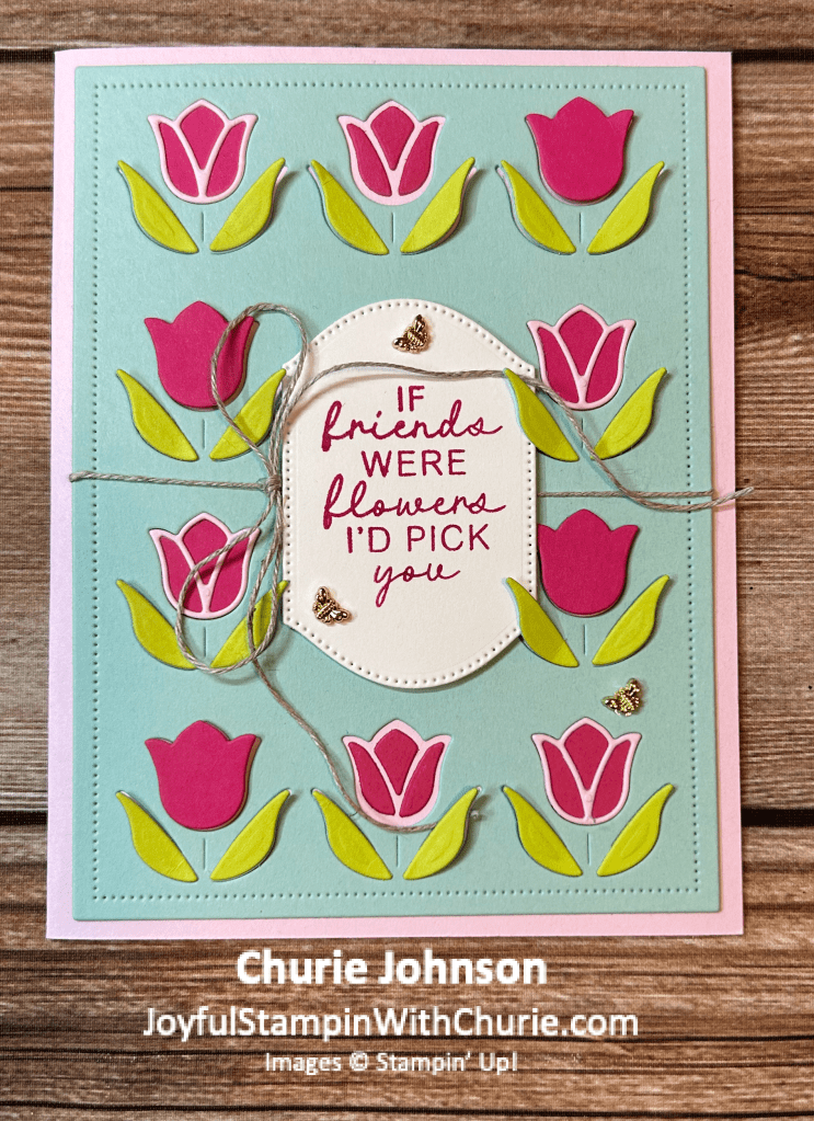 I just love all the different color combinations you can use with the Stampin Up Sunshine & Tulips bundle. The colors I used for this card are the following: