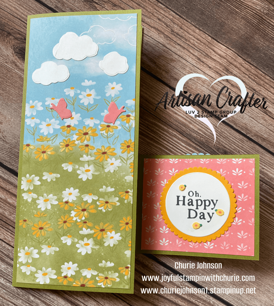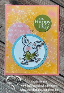 For these last two projects I created standard A2 cards (4.25″ x 5.5″). The two bunnies are just adorable. To complete the scene of it being a rainy day, I added clouds using the Basic Borders dies to the card on the left. I could not just make a rainy day card without making a happy day card. This last card turned out so cheery with the DSP and colors.