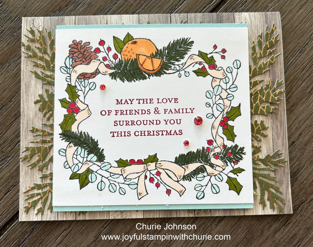 Have you ever looked in a Stampin’ Up catalog and thought “I need to make this”? Well, this card right here fell into that category for me. I think this stamp set might be one that many people missed because it is a Hostess reward and on page 79 of the September – December 2023 Stampin’ Up Mini Catalog. This stamp set cannot be purchased, but it can be earned if an individual hosts a Stampin’ Up party or has a qualifying order. If you would like to get this beautiful stamp set, I have great news… it is still available until the end of December or while supplies last. If you would like more information on how to earn this stamp set, please email me: churiejohnson@yahoo.com.